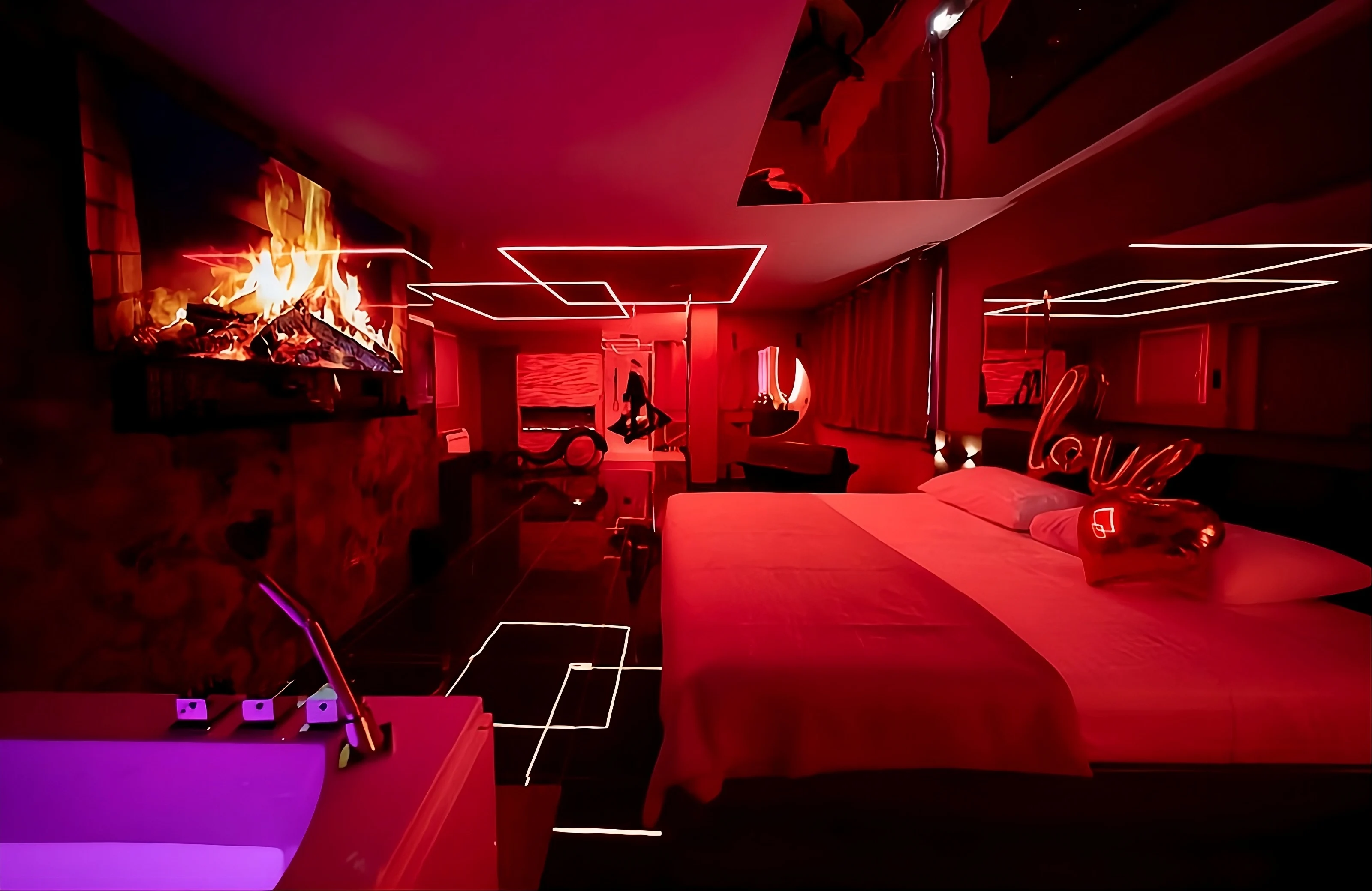 Ici, chaque détail a été imaginé pour vous faire vivre plus qu'un simple moment à deux : une véritable parenthèse hors du temps. Love Room Nos Limites vous accueille dans un cocon chic et feutré, où l'ambiance joue avec la lumière, les textures, et les émotions.