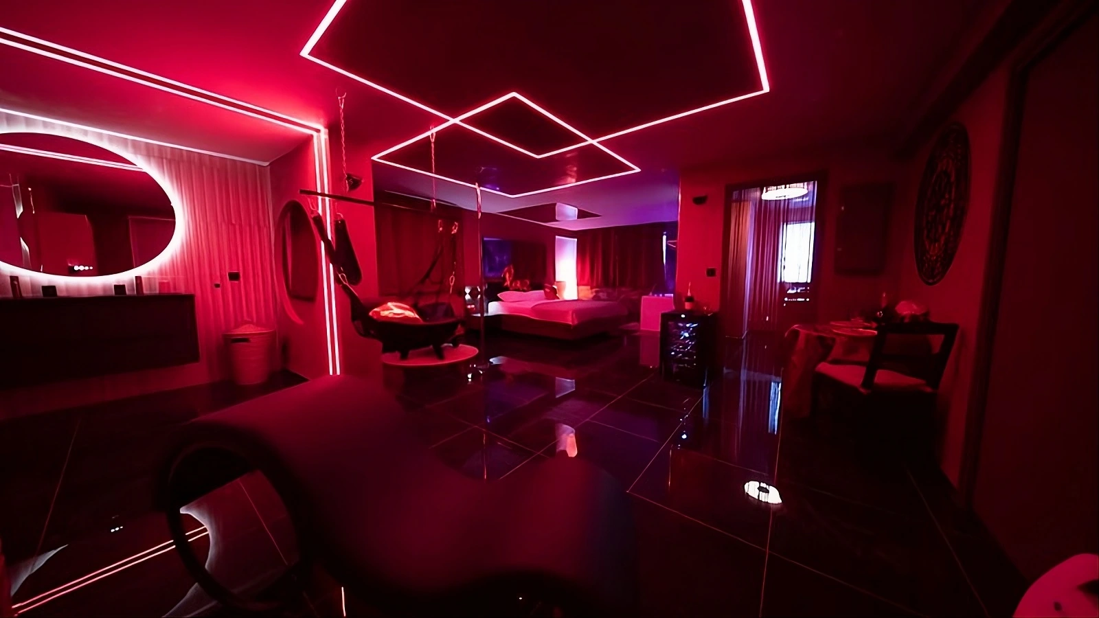 Plongez dans une atmosphère unique où la technologie rencontre le raffinement. Éclairage d'ambiance modulable, climatisation, mini-bar, et connectivité complète pour que vous puissiez créer votre propre univers sensuel.